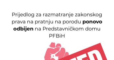 Predstavnički dom Parlamenta Federacije BiH jučer je objavio da za uvrštavanje tačke o pravu porodilja na pratnju na porodu na dnevni red nije bilo dovoljno glasova, uz tvrdnju da je „za“ glasalo 48 zastupnika.