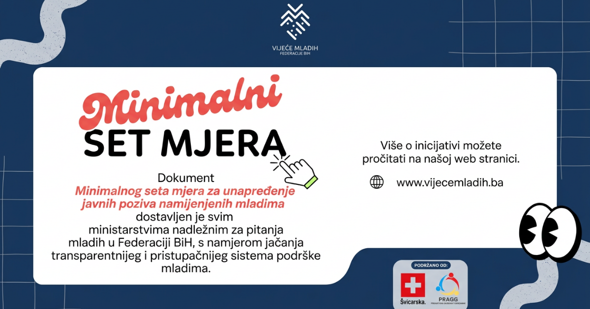 Upravo iz potrebe da se javni pozivi namijenjeni mladima učine jasnijim, pristupačnijim i kvalitetnijim, Vijeće mladih Federacije BiH uputilo je inicijativu kantonalnim ministarstvima resornim za pitanja mladih, kao i Federalnom ministarstvu kulture i sporta, uz dokument Minimalnog seta mjera za unapređenje javnih poziva namijenjenih finansiranju projekata omladinskih organizacija i organizacija koje rade sa mladima.